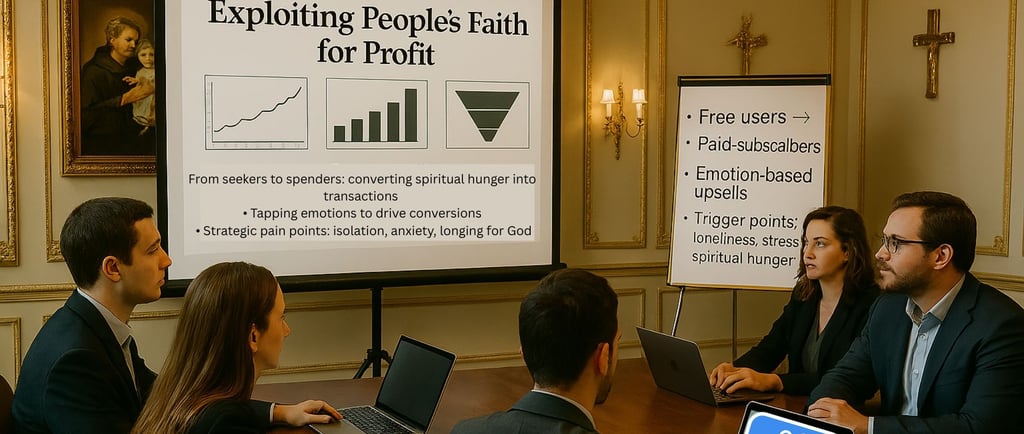 It’s about converting Christian users into paying customers—often by leaning on their desire for spiritual closeness, healing, or peace.